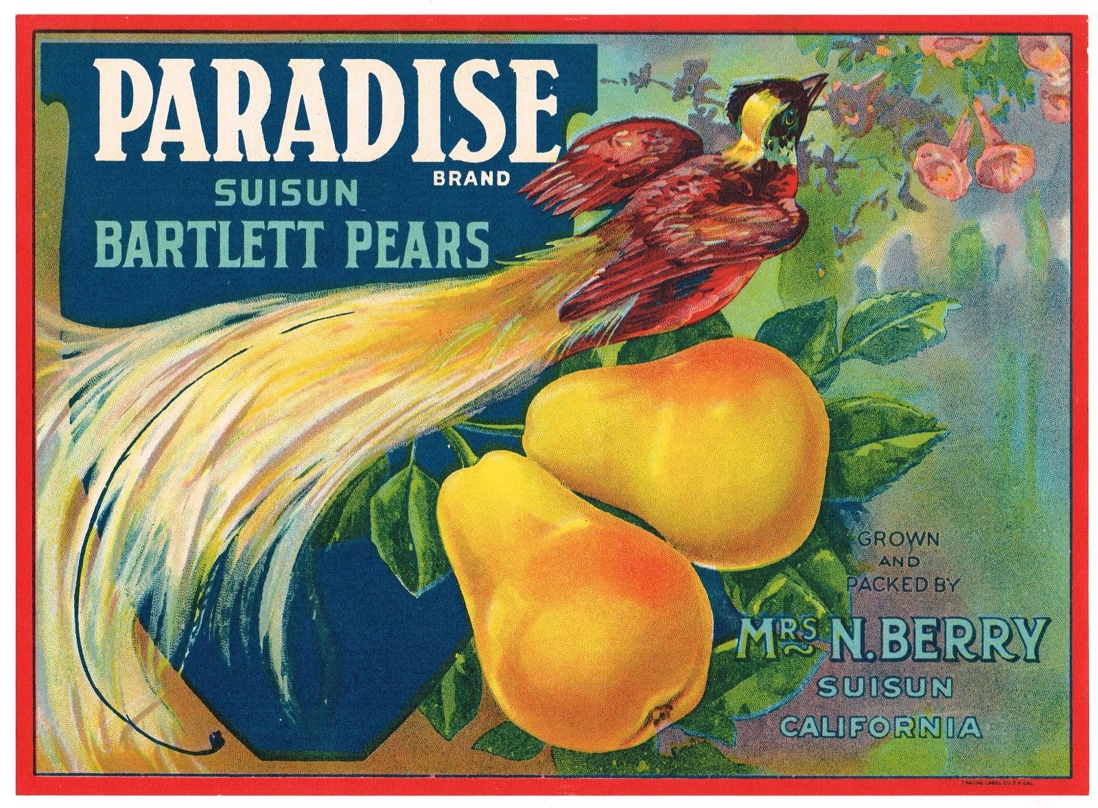 Above are four box labels from some of the other old pear orchards in the Suisun Valley.