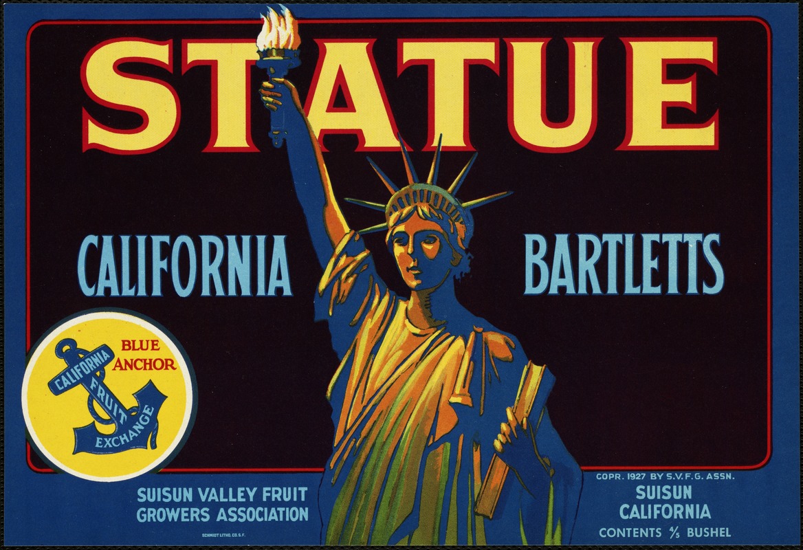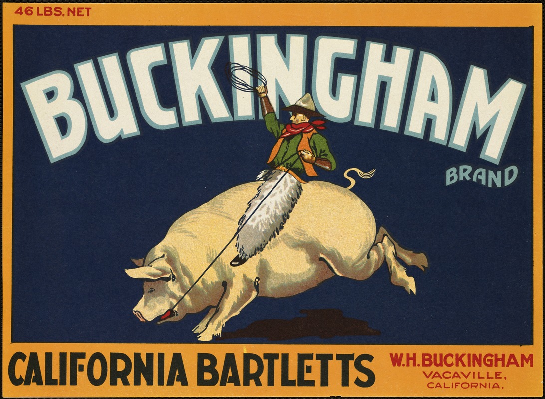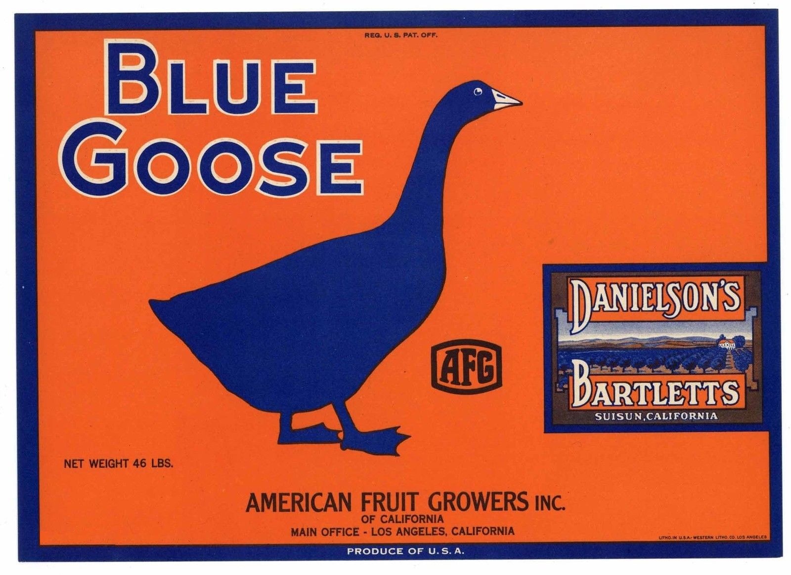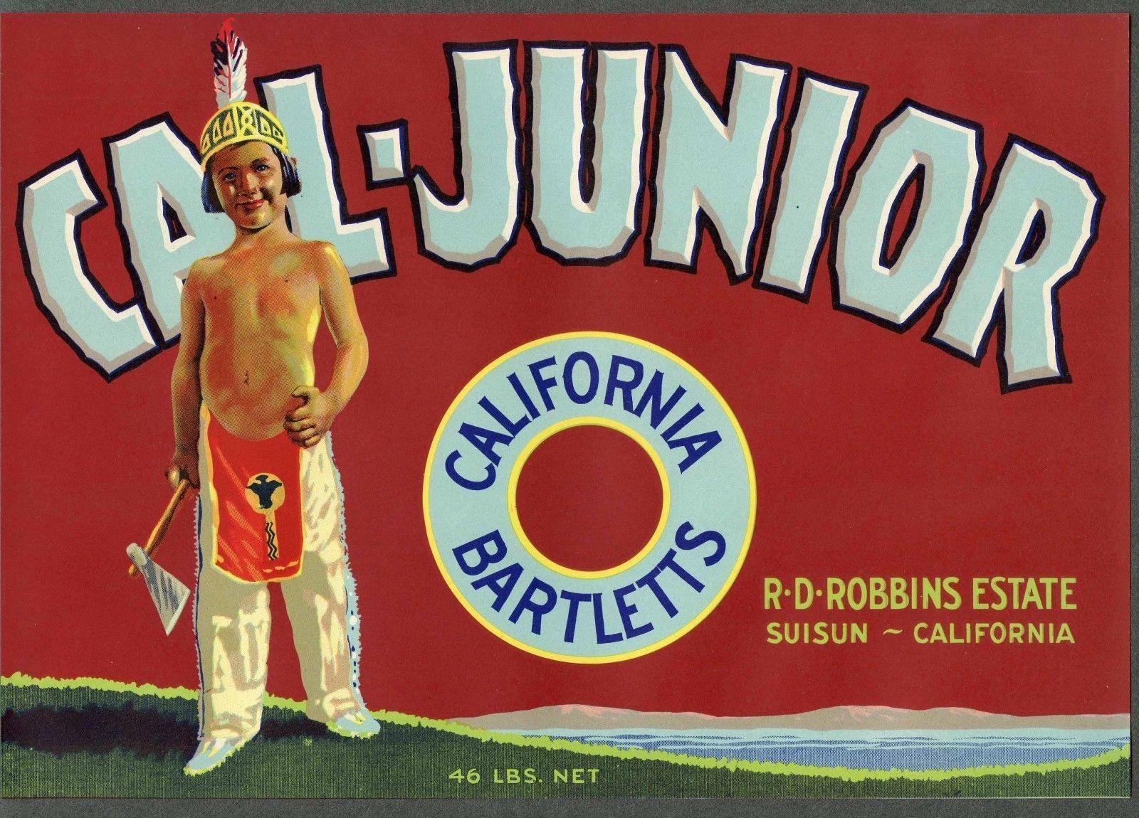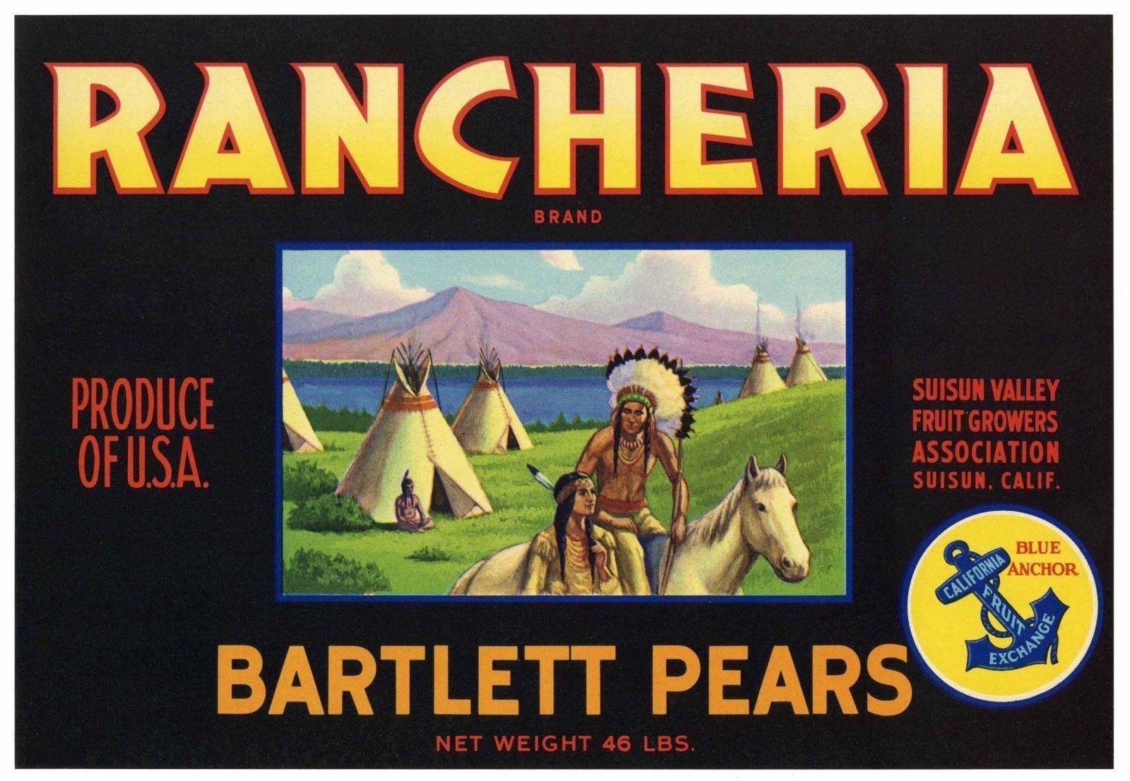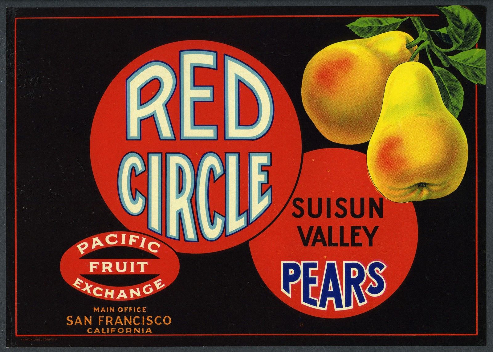 Fruit trees, especially those for Bartlett Pears, and to a lesser extent Bing Cherries, were the main crop grown in the Suisun Valley from the late 1880s to the early 1970s when wine grape vineyards began appearing. This was before cardboard boxes were widely used, and fruit packing houses, like the Suisun Valley Fruit Growers Association, would ship their produce in wooden boxes, with labels glued on the ends to identify where the fruit came from. Many of these labels were quite colorful, and they represent a fascinating part of the local history. Shown below are some historic labels from Suisun Valley, and the neighboring Vacaville and Rio Vista areas. Clicking on any of these labels should bring up a more detailed view.