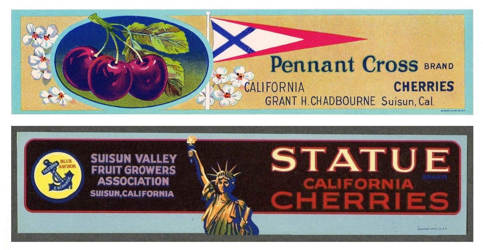 The first three labels shown above are from the Suisun Valley Fruit Growers Association, which is the main organization representing farmers in the valley today.