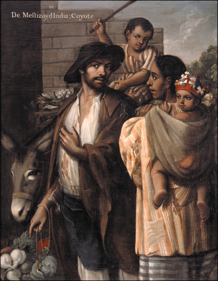 The Casta system of colonial Spain determined a persons social importance in old Mexico, and the church and government records of the times used over one-hundred diffrent terms to describe diffrent racial categories. The names Peninsular, Criollo, Indio and Negra describe persons of "pure" racial ancestry, whereas names such as Mestizo, Mulatto, and Zambo, in addition to many other terms, describe the "mixed-blood" children resulting from inter-racial marriages. Definitions of the main casta categories of colonial Spain follow.