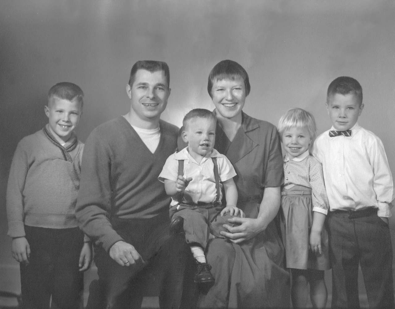Above Left: Randy and Sally Klotz about 1962 with (left-to-right) Don, Tommy, Ellen and Ken.