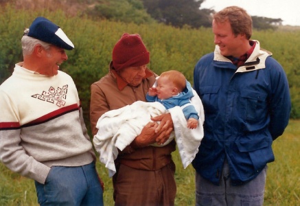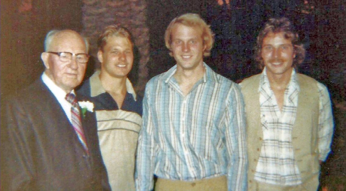 Above and Center (L-to-R): Hugh Freeman with grandsons Tom, Don and Ken Klotz (1979). Lower Left: Four generations of Klotz men - Randy, Al, Andrew and Don (1988). Lower Right: Jane, Don and Randy Klotz (2004) at a Vacaville High School soccer game.