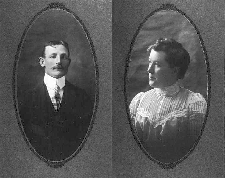 Johann and Annie's daughter Katie (1877-1961) married Charles Henry Shaffer (1870-1901) on March 8, 1896 in Yreka. He died prematurely in 1901 at the age of only 31 years, afterwhich Johann and Annie's youngest daughter Annie Schnebele (1880-1929) married Charlie's younger brother Frank Shaffer (1872-1948) on March 11, 1903 in Yreka - the younger Annie, of course, was the mother of Izzy Klotz. The 1903 wedding portraits of Izzy's parents are shown on the next page. Frank eventually got a job working as an employee for the city of Yreka, where he worked for many years until his retirement. Katie, Charlie, Annie and Frank are all buried in Evergreen Cemetery with Katie and Annie's parents (i.e., Izzy's grandparents).