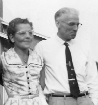 Heinrich "Henry" Oberbach, Jr. (1864-1950) was born on Jan. 30, 1864 in Adelmannsfelden, Germany, and baptized there five days later on Feb. 4th in the local Protestant (Evangelisch) church. He immigrated to America sometime in the 1880s to avoid being conscripted into the German army, and married Caroline "Carrie" Borkecher (1864-1945) on May 19, 1888 in the Plum Creek Township of Butler County, Nebraska. They homesteaded in the frontier town of Eustis, where they are said to have lived in a sod house out on the prairie, and where they raised a large family. They lived here until about 1901, when they moved to a wood-frame house in Leavenworth, Kansas. Carrie died on Sep. 14, 1945 in Tonganoxie, Kansas; and Henry died on May 23, 1950 in the same town. Both are buried in Tonganoxie Cemetery.