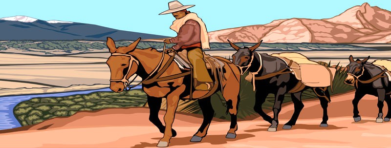 *Antonio Armijo (c.1804-1850) led some 60 men on horses, with a pack train of 100 mules to California, where they traded wool blankets for more mules and horses (two blankets for one animal), then herding them back to New Mexico to sell for profit. Armijo wrote a diary of his journey in Spanish, describing the route they followed, when and where they stopped, and noting where there was no water. He subsequently submitted a report to José Antonio Cháves, the Mexican governor of New Mexico, who saw to the publishing on June 19, 1830 of Armijo's route description. Armijo and his father a few years later settled in California, where they held the Tolenas land grant in Napa and Solano Counties. (See the website of the Old Spanish Trail Association, especially posts by historian Paul Spitzzeri.).