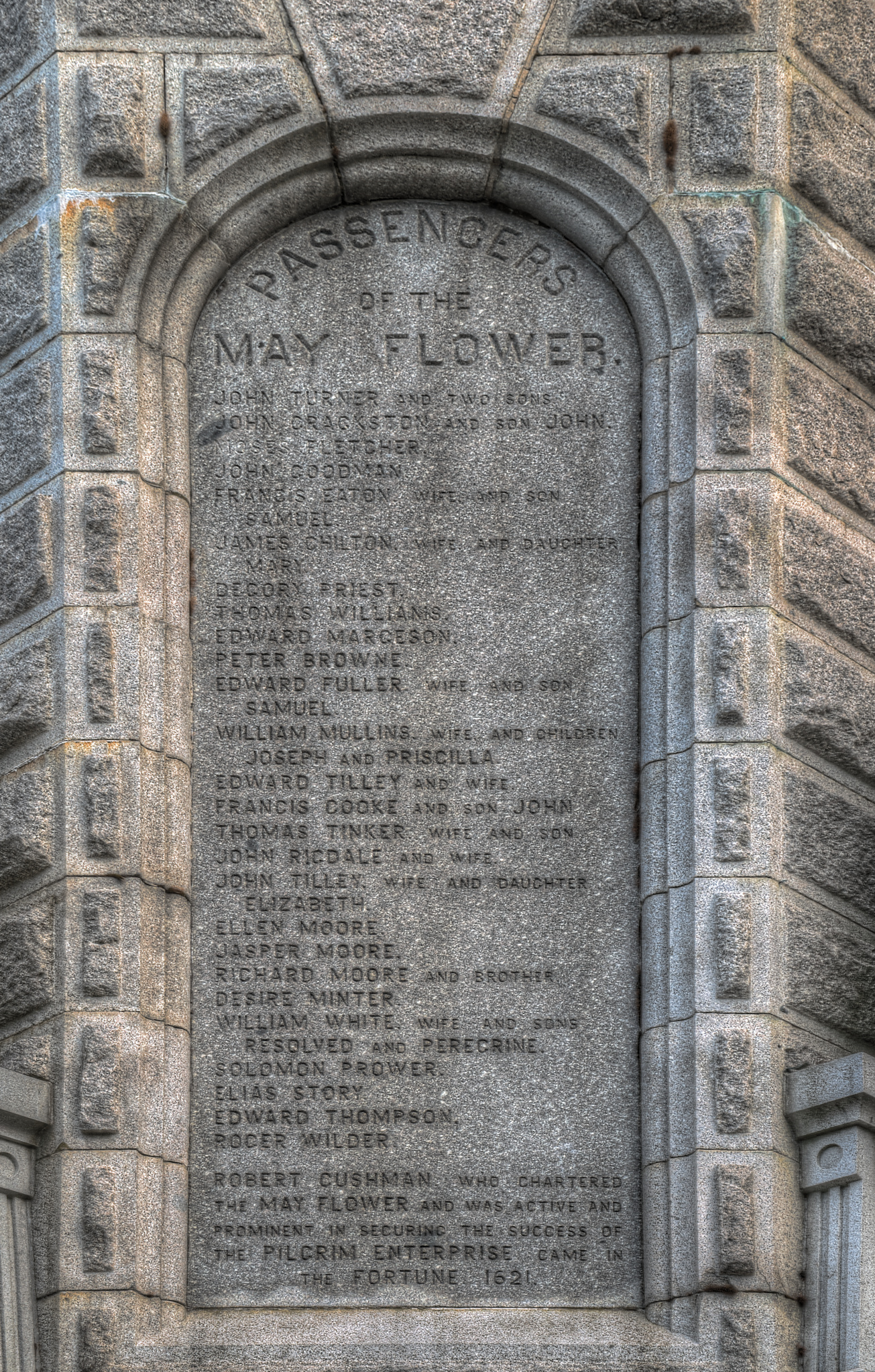 The Mayflower set sail from Plymouth Harbor in England on September 6, 1620 with 102 passengers and a crew 30 or so men bound for Virginia Colony in the Americas. They hoped to reach the English settlement of Jamestown, but were forced to drop anchor instead on November 11, 1620 in what today is Provincetown Harbor in Cape Cod Bay in the then unsettled wilderness of Massachusetts, more than 400 miles north of Jamestown. They relocated a few days later to a better site on the opposite (west) side of the bay, where they disembarked on December 21, 1620 at Plymouth Rock to found the Plymouth Colony, which became the second successful English settlement in North America. These are the storied Pigrims, who in 1621, following their first successful harvest, celebrated what some regard as the first Thanksgiving Day, probably about the time of the September 29 feast day of Michelmas. A list of these settlers follows.