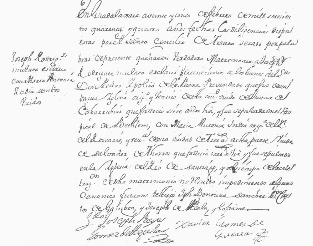 Lorenzen, Bob, 2012, Marriage Record for Joseph Rodrigues and Maria Antonia, collected at the Catholic Church Archives in Guadalajara, Mexico about 2009.
