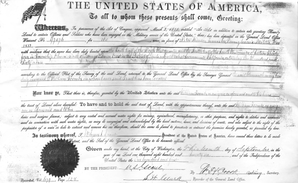 By Wm. H. Crook acting Secretary, S.W. Clark, Recorder of the General Land Office.
