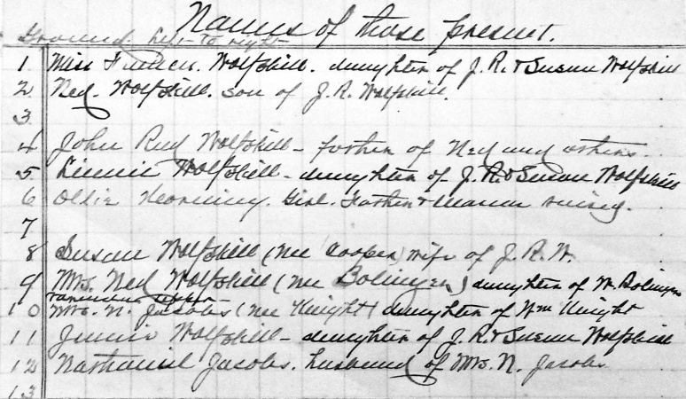 In the vicinity of Winters on the lower course of Putah creek there are a number of old [Indian] village sites. The information concerning these old sites was obtained chiefly from Mr. Joseph Wolfskill, an old resident of Winters and a descendant of one of the first settlers of the Wolfskill grant. [Joseph Wolfskill (1850-1925) being the son of Sarchel Wolfskill, and a nephew of Sarchel's brother John Reid Wolfskill. His uncle's] camp was a tule house on the south bank of Putah creek at a point about four miles up stream from Winters and about three hundred yards west of the present residence of Mrs. M. A. H. Wolfskill [Joseph's mother]. At the time of [Mr. Wolfskill's] arrival here there were no Indians at all living along Putah creek, at least in this vicinity, having all been removed to the missions about San Francisco Bay by the Franciscan Fathers some years before. The first Indians to come into the neighborhood were some refugees from the mines in the Sierra Nevada mountains. A year or so after Mr. Wolfskill's arrival, he saw coming across the plains northeast of Winters a single Indian who, when he arrived, said that his people had become exhausted on the plains from their long and hard journey and that he had started for the creek to bring water to revive them. Mr. Wolfskill told the Indian to bring his people to his camp and that there they should be provided with food and shelter. ... The Indians having been fed and well treated by Mr. Wolfskill told him that their old home was in this vicinity and asked that they might be permitted to go to Sonoma mission and return with their families and live upon his premises. This request Mr. Wolfskill very gladly granted with the result that in a short time a village or rancheria of considerable size was established immediately about his camp. Not long after the establishment of this village three other villages were established [in the area of the Putah Creek Rancho]. From: Barrett, S.A. (1908), The Ethno-Geography of the Pomo and neighboring Indians, Univ. of California Publications in American Archaeology and Ethnology, v. 6, n. 1, p. 298-300.