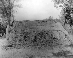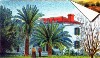 First House - The Old Tule HouseMy father, the late John R. Wolfskill, built three residence on his property, Rio de los Putos Rancho, or Wolfskill Grant, Solano County, California. His first residence was a house he always referred to as the Old Tule House. Erected probably during the summer or autumn 1841, as he settled on Rio de los Putos Rancho grant in 1841, having arrived from Los Angeles, California, that season. For its construction he had gone to the jungles of Rio de los Putos, and selected and cutting straight saplings of willow and alder and dragged them with his riata and saddle horse by pommel of his saddle to the place where he was to erect his Old Tule House. You will remember there were no saw-mills in vicinity of Rio de los Putos Rancho at the time, 1841. Captain Sutter and his mill-wright James Marshal, had not as yet decided on the site for their mill which brought about the discovery of gold and rush later to California. There was no lumber to be had at this time in California except by most primitive methods. The whip-saw, the foot-adze, the plow, and ax. So John R. had to use his brain, and as I remember he possessed an abundance which was always used to excellent purpose. So, he decided he'd build the frame of his house of the saplings and thatch it with tule, so this was the material for his first or Old Tule House. The frame work was securely fastened together with these thongs of raw hide and bundles of tule were thatched to that frame work by thongs or strips of raw hide soaked in water until it was soft and flexible and those thongs or strips were a substitute for nails, screws, etc., for the building of his house in that locality in those days. The bundles of tules were laid on and and secured to this frame by the raw-hide thongs in such manner as to run the rain water off the enclosure. This residence was maintained for several years after the discovery of gold. During the maintainance of the Old Tule House, after the discovery of gold, relatives, friends, acquaintances of my father coming to California and to the mines would arrive at Sutters Fort, and inquire for John Wolfskill, and where he lived. Sutter would climb to the top of his fort and show the guest the gap of Putah cañon, of the Coast Range of mountains, and tell them at the foot of the mountains on the stream was where Wolfskill lived. There being no depositories for the safe keeping of [gold] dust the Rio de los Putos Rancho, being isolated suggested it as a good place to leave their wealth, so some of these thrifty ones came to the Rio de los Putos Rancho, and the Old Tule House as a safe place for their gold dust. ... My father has told me many times there were times when there was more than $100,000 in gold dust in the Old Tule House, and as you will remember the opening left in the frame of that house for a door, when the door was installed, the door was a blanket hung in the opening, calling to mind the saying of the Wolkskill's of that age and time; - "The Latch Spring Always hung outside." My father realizing it was not the proper thing to do to allow those people to hoard their wealth in such quantities in such an unsafe place, and it would only be a matter time when some misunderstanding would arise between these several different parties concerning their dust. So, my father decided to notify each and every one of those having dust in the Old Tule House to remove it. ... In due time this wealth was all removed. Ned Wolfskill