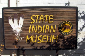 California State & National Parks have several museums that exhibit California Indian artifacts. A few also have outdoor displays with bedrock mortars. But the best display by far of bedrock mortars is at Indian Grinding Rock State Park, which is listed below under its own heading. The button link immediately below leads to information on a few of the others.
