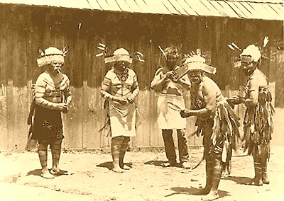 Most Patwin villages were not large, and contained maybe fifty to one-hundred people from 10 to 15 families. Large villages might be up to 300 people, and some writers suggest that in a few, very rare cases, there were villages of up to a thousand people. However, it seems more likely that such large villages were really entire tribelets made up of one or two large villages, together with several outlying, much smaller encampments dependant on the main settlements. Each family in the village had their own earth-covered hut, in which they sat out bad weather. These huts were clustered around a larger ceremonial lodge, or "roundhouse", reserved for secret dances and rituals. There was was also a smaller sweat house for the men, and a small menstrual hut for the women. The ceremonial lodges were central to what Alfred Kroeber (1925, 1932) calls the "Kuksu cult", which was a religious tradition of rituals, taboos, and dances that controlled everyday life of the Patwins. This cult also dictated rituals for boys and girls to observe at puberty to be accepted into their society as adults. Besides the main villages, there were encampments of one or more families located a short distance away. There were also temporary food-gathering camps, out in the marshes or foothills, that were only occupied temporarily in the Spring, Summer or Fall. Whereas the winter huts of the main settlements were earth-covered, those of food-gathering camps were more apt to be temporary structures of grass, bark, or bundles of sticks. (Please see our article on shelter for more information.) Professor James Bennyhoff (1977) writes that before the Spaniards came, "permanent villages were confined to natural levees and knolls along the banks of major watercourses and adjacent lakes. Tribelet centers were occupied more or less continuously for generations ... Segments of the tribelet population established seasonal camps along intermittant creeks during the spring, and temporary hunting and harvesting camps were probably set up wherever the need arose. No midden accumulations are found on the dry plains and uplands away from watercourses; though unoccupied by a resident population, this hinterland was extensively exploited by hunters and collectors of both food and raw materials. Abandoned villages retained their names and served as camp sites or temporary abodes for villages which had to move upon the death of village headmen." Though Bennyhoff (1977) writes about the Plains Miwok, this also applies to their neighbors the Southern Patwin of Suisun Valley. However, village life changed for the Patwin after the Spanish conquest, as attested to by Simpson (1847), who visited an unnamed Indian village in January of 1842 at General Mariano Vallejo's ranch in Sonoma. Some members of this community were almost certainly Suisun Indians from the Suisun Valley, who were survivors of the great small pox epidemic of 1838 that killed off most of their people. Simpson writes that, "during the day, we visited a village of General Vallejo's Indians, about three hundred in number, who were the most miserable of the race that I ever saw, excepting always the slaves of the savages of the northwest coast. Though many of them are well formed and well grown, yet every face bears the impress of poverty and wretchedness; and they are, moreover, a prey to several malignant diseases, among which an hereditary syphilis ranks as the predominant scourge alike of old and young." "They are badly clothed, badly lodged and badly fed. As to clothing, they are pretty nearly in a state of nature; as to lodging, their hovels are made of boughs wattled with bulrushes in the form of beehives, with a hole in the top for a chimney and with two holes at the bottom towards the northwest and the southeast, so as to enable the poor creatures, by closing them in turns, to exclude both the prevailing winds; and as to food, they eat the worst bullock's worst joints, with bread of acorns and chestnuts, which are most laboriously and carefully prepared by pounding and rinsing and grinding." "Though not so recognised by the law, yet they are thralls in all but the name; while, borne to the earth by the toils of civilization superadded to the privations of savage life, they vegetate rather than live, without the wish to enjoy their former pastimes or the skill to resume their former avocations. This picture, which is a correct likeness not only of General Vallejo's Indians, but of all the civilized aborigines of California, is the only remaining monument of the zeal of the church and the munificence of the state." TribeletsEach tribelet was a self-governing, politically independent band up of several families, bound to one another by ties of common language, culture and ancestry. Being members of the tribelet meant they shared ownership of a set territory, with defined boundaries, within which they made their homes, exploited the land. and defended their land from others. Though the tribelet might share identical language and customs with their neighbors, they remained separate and distinct from them. Each tribelet had one or two main villages, plus any number of much smaller, outlying encampments of one or more families. All was overseen by a hereditary headman, known to the Patwin as a "sektu", who came from the main village. However, the sektu was not an absolute ruler. Rather, he was more like the leader of a commune or co-op, in which the lands of the tribelet were equally owned by all its members, and all shared in its bounty. This sektu held his office only if the elders wished it to be so, and if he was no longer competent, or died without a male heir, they chose another sektu. The tribelet took its identity from the main village, the one where its sektu had been born. Otherwise the tribelet was nameless. However, should the sektu pass on to the spirit world without an heir, and his successor be chosen from an outlying satellite village, then most of the populatio