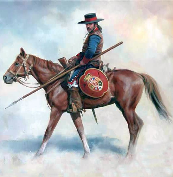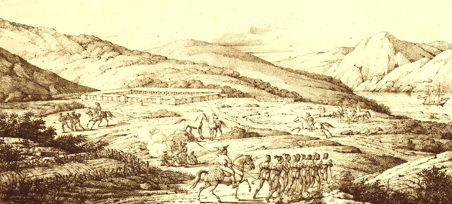 Moraga then served as a private, corporal and sergeant for the next 22 years at the San Francisco and Monterey presidios, before being promoted in 1806 to the rank of alférez, which is that of a junior officer. He next led expeditions from 1806 to 1808 to explore the San Joaquin Valley, where he fought several battles against the Indians. He is considered to be the first non-native explorer to actually enter the valley, and he is credited with naming several of the major rivers there. He was also one of the first white men to enter the Suisun Valley, and his successful expedition and battle there on May 22, 1810 against the Suisun Indians was followed by his 1811 promotion by then California Governor José Arrillage to a brevet lieutenant. He was promoted again in 1817 to full lieutenant at Santa Barbara. He retired at age 55 in 1820 in Santa Barbara after 37 years service in the Spanish army, with 46 sorties against Indians, more than other Spanish soldier. Gabriel Moraga married his first wife Ana Maria Bernal (c.1770-1802) on August 2, 1784 at Mission Dolores in San Francisco (Presentacion Licencia on July 16, 1784), and they had at least 9 children before her burial on February 11, 1802 at Mission Santa Barbara. He then married his second wife Ana Joaquina Alvarado (c.1788-1863) at Mission San Gabriel, and they had at least 5 more children. He died in 1823 at the age of 58 years, and he was buried on June 15, 1823 in the Santa Barbara Mission Cemetery. Gabriel's son José Joaquin Moraga (1793-1855), with first wife Ana Bernal, was one of the grantees of the Rancho Laguna de los Palos Colorados in modern Contra Costa County. The city of Moraga, which is in Contra Costa County, is named for this son. Notes: