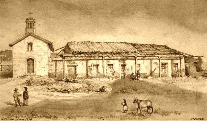 Vallejo as a teenager was mentored by the Spanish Governor of California Pablo Vicente de Sola, and subsequently served as personal secretary to Sola's sucessor Luis Arguello. Mexico gained independance in 1821 from Spain, and when the newly created Republic of Mexico in 1824 recognized Alta California a separate territory, Vallejo enrolled as a cadet in the Presidio at Monterey. He was soon appointed corporal, then alférez (a junior officer). Notably, he commanded a force in 1829 that won a three-day battle against an uprising of Miwok Indians. Vallejo's successes resulted in his appointment in 1833 to Commander of the San Francisco Presidio. When the Sonoma Mission was closed that same year, Vallejo became responsible for the mission properties, resulting his becoming the founder in 1835 of the pueblo (town) of Sonoma. When Vallejo came to Sonoma in 1835 he met with and formed a military alliance with a Suisun Indian leader named Francisco Solano, who had come to be recognized by many of the Patwin people as their chief. Vallejo in his memoirs claims that Solano commanded at times three-thousand Indian warriors, who aided in several conflicts with various California Indian "tribal" groups. Vallejo subsequently became Comandante of the Fourth Military District and Director of Colonization of the Northern Frontier, which gave him highest military command in California. This was followed by a promotion on November 29, 1836 from alférez to lieutenant-colonel, and a new title as the Comandante General of Alta California. Political disputes with the Mexican government led them in 1842 to remove Vallejo from his command, and he soon came to the belief that California would be better off under control of the United States. He was neutral at the start of Mexican War, but he ultimately sided with the United States. When Mexico ceeded California in 1848 to the U.S. at the end of the war, Vallejo became an influential member of the Constitutional Convention for the new state, and he was elected in 1850 to the first session of the State Senate. Vallejo by the mid-1850s retired from politics to devote himself to writing a five-volume history of California that was never published. He also amassed a huge collection of papers pertaining to California under Mexican rule. Historian Hubert Howe Bancroft was able to gain Vallejo's confidence, and Vallejo eventually gifted his papers and manuscripts to Bancroft. Vallejo also dictated in 1874 and 1875 a long reminiscence on California history. Lastly, he convinced many of his associates from the old days to assist Bancroft in compiling from 1884 to 1890 a seven-volume history of California that is now part of the 39-volume set of "The Works of Hubert Howe Bancroft". Vallejo married Francisca Maria Felipa Benecia Carillo (1815-1891) on March 6, 1832 at the San Diego Presido, and they had a large family of 14 children. They lived well, and Vallejo during his military career acquired the Petaluma, Suscol and Suisun Indian land grants. However, his political influence failed to prevent the eventual loss and/or sale of these vast holdings following the annexation of California by the United States. The Vallejos continued to live comfortably, but the only land Mariano was able to retain was a modest home in Sonoma. He died on January 18, 1890 at Sonoma, where he is buried in the Mountain Cemetery. Mariano and Francisca's son Platon Vallejo (1841-1925) became a doctor in the town Vallejo, which is named for his father. He is said to be California's first-born physician. He personally knew his father's ally Francisco Solano and considered him a friend. The Vallejo family also permitted Solano's wife Isidora Filomena to live her final years on their land at their home in Sonoma. Platon many years later carved bas-relief portraits of Solano and Isidora, which are the only likenesses of them made by someone who actually knew them. Notes: