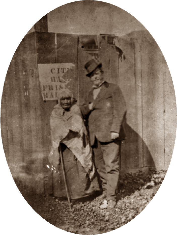 [The picture to the right shows General Vallejo in Sonoma with an Indian Woman, who is not identified. She might be Isidora Solano, except that Isidora was supposed to be fairly tall, whereas the woman shown in the photo is short. The picture is from the collection of the Bancroft Library.]